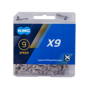 Цепь KMC x9 9 ск., 114 зв., с замком, серебристо-серая – купить в интернет-магазине ВелоДрайв, цена со скидкой 34%, купить в Самаре в интернет-магазине Велодрайв