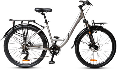 Городской байк Horst Shadow 2025 рассчитан на неспешные прогулки выходного дня по дорогам и паркам. Подойдет не только женщинам, но и неспортивным мужчинам. Алюминиевая рама очень низкая, удобная для посадки на велосипед. Амортизационная вилка Horst повышает комфорт во время езды по неровным дорогам и паркам. 26-дюймовые колеса имеют прочные двойные обода. Трансмиссия простая на 7 передач прогулочного уровня Shimano Tourney. За безопасность отвечают дисковые механические тормоза Yinxing, которые отличаются простотой настройки и надежностью работы. Велосипед укомплектован дополнительным оборудованием: пластиковыми крыльями, полноценным щитком на цепи, задним и передним багажниками, а также алюминиевой подножкой для парковки.