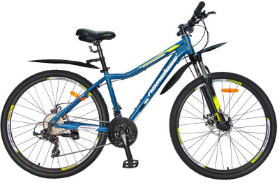 Горный велосипед для милых дам Nameless J7600DW 27.5 – классический хардтейл для города и загородного бездорожья. Байк сравнительно легкий благодаря алюминиевой раме, но при этом прочный, не подвержен коррозии. На него установлена фирменная трансмиссия Shimano на 24 скорости – подобрать нужный режим можно под любой рельеф, передачи переключаются быстро, но плавно, без рывков и соскальзывания цепи. Торможение обеспечивает дисковая механическая тормозная система – одна из самых надежных, не боится грязи, воды, срабатывает в самых сложных условиях. Передний амортизатор добавит стабильности на бездорожье или разбитой, каменистой дороге.