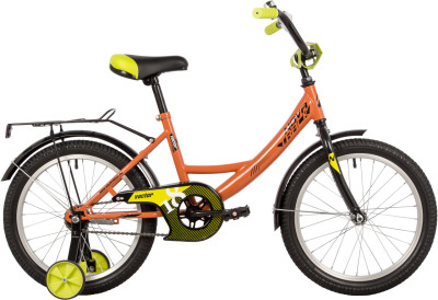 Детский велосипед Novatrack Vector 18 – хорошая стартовая модель для освоения езды на велосипеде. Велосипед сконструирован на стальной раме - прочной и надежной. Для максимально комфортного катания рама велосипеда занижена, поэтому велосипед подойдет и для мальчиков, и для девочек 6-7 лет (ростом до 125 см). Байк оснащен багажником, защитой цепи, крыльями и дополнительной парой съемных колес, которая поможет начинающему маленькому райдеру удерживать равновесие при катании и постепенно освоить двухколесный велосипед. Ножной тормоз интуитивен и очень прост в использовании ребенком.