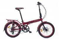 Городской велосипед складного типа Easy Disk с колесами диаметром 20 дюймов с покрышками WANDA и рамой из алюминиевого сплава (тип 6061), оснащенной механизмом складывания, что существенно упрощает перевозку и хранение. Модель оборудована механическими узлами от Shimano, дисковыми тормозами Z.Star RDM 6.0, удобным задним багажником с тросами для крепления багажа, крыльями из стали и защитой звездочки в виде кожуха. Трансмиссия имеет семь скоростей.