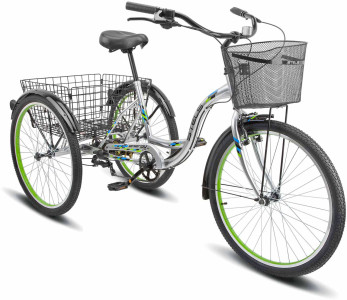 Трехколесный велосипед Energy VI 26 с удобной низкой рамой из стали, большими задней и передней корзинами для перевозки личных вещей и широким эргономичным седлом. Комфорт и безопасность передвижения - модель оборудована стальными крыльями и защитным кожухом для цепи. Механика производства Microshift и шестискоростная трансмиссия для выбора оптимального режима нагрузок. Колеса диаметром 26 дюймов позволяют кататься в городе, парках и по пригородным дорожкам.
